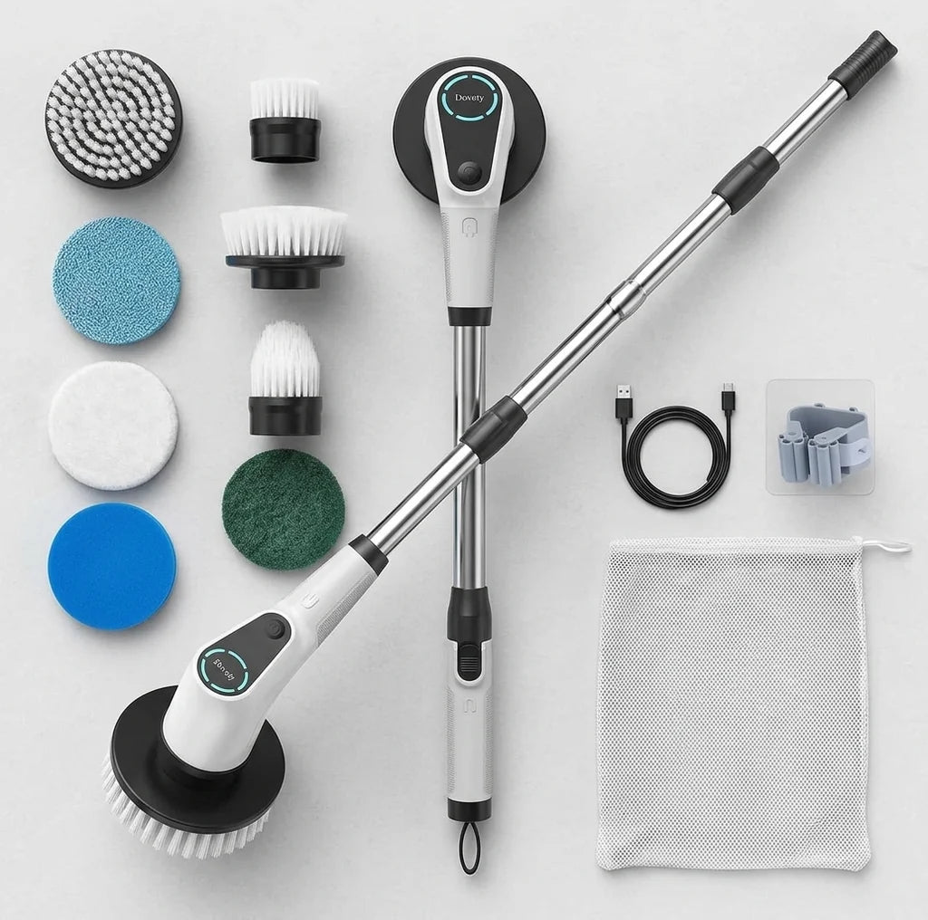 Prepare to tackle every mess! Your Dovety Scrubber comes with eight versatile brush heads, perfectly shaped for flat surfaces, tight corners, curved areas, and more. No spot is safe from sparkling clean.
